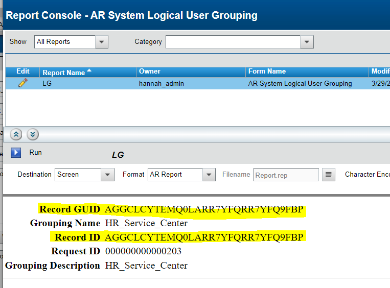 To create the report and fetch the details of the Field: “Record GUID” or “Record ID” for the above searched Logical Group record, follow the next steps: