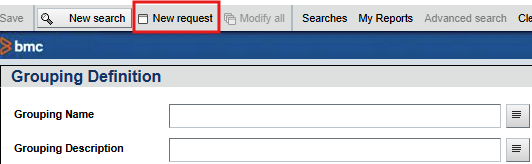 5. In the AR System Logical User Grouping form, switch to New Request mode: