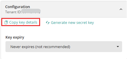 6.4 Click on 'Confirm' and the Key gets generated and is displayed as mentioned below
